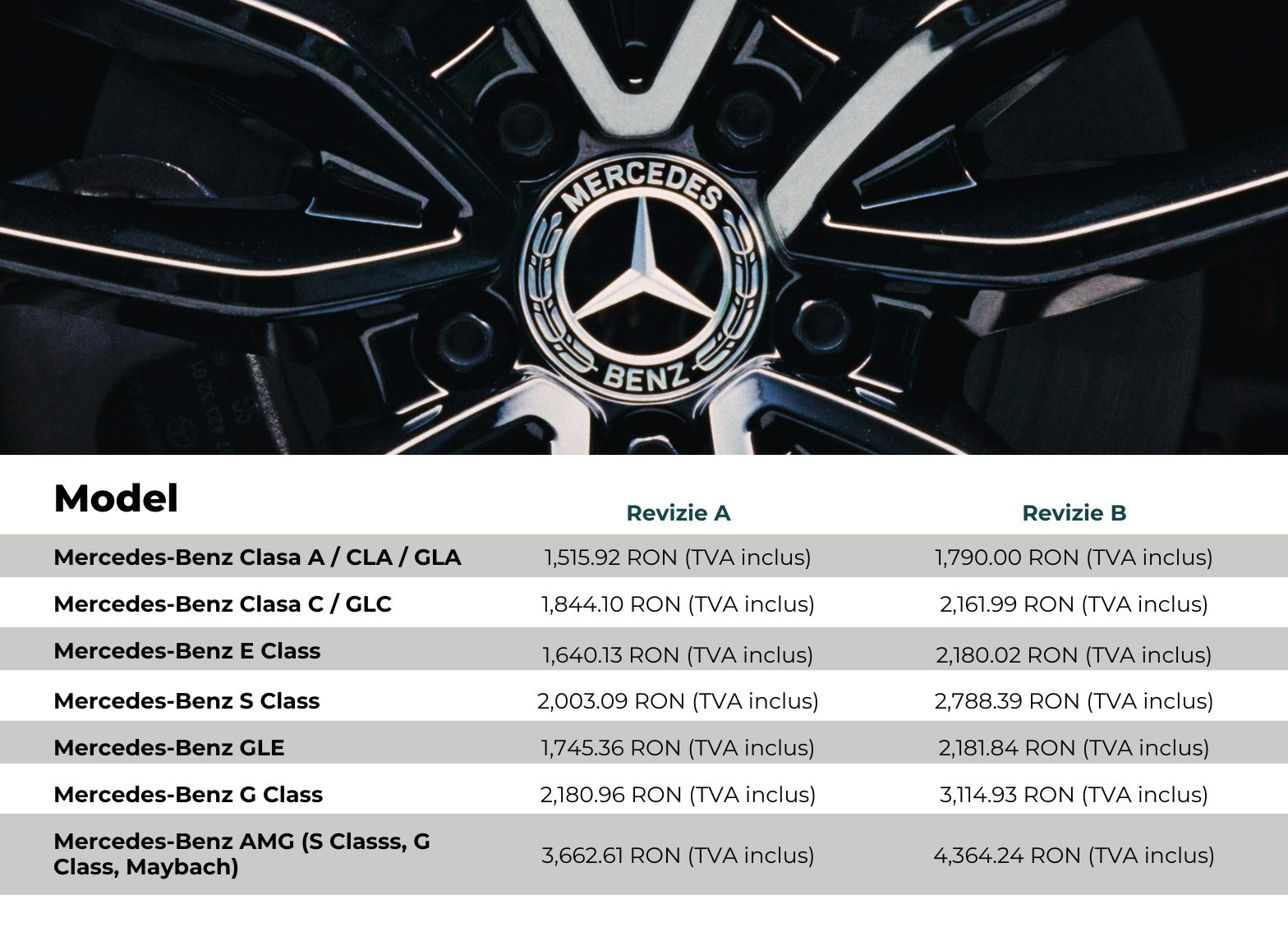 Ai grijă de performanța și siguranța mașinii tale Mercedes-Benz. Alege pachetele noastre de service dedicate pentru Revizia A și Revizia B, realizate conform standardelor producătorului.